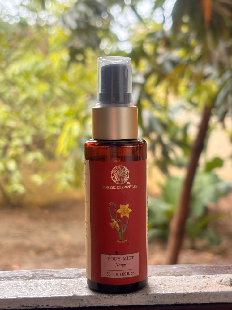 I love the Nargis range from Forest Essentials. I keep the mini 50ml bottle in my purse for a quick spray of divine feminine fragrance