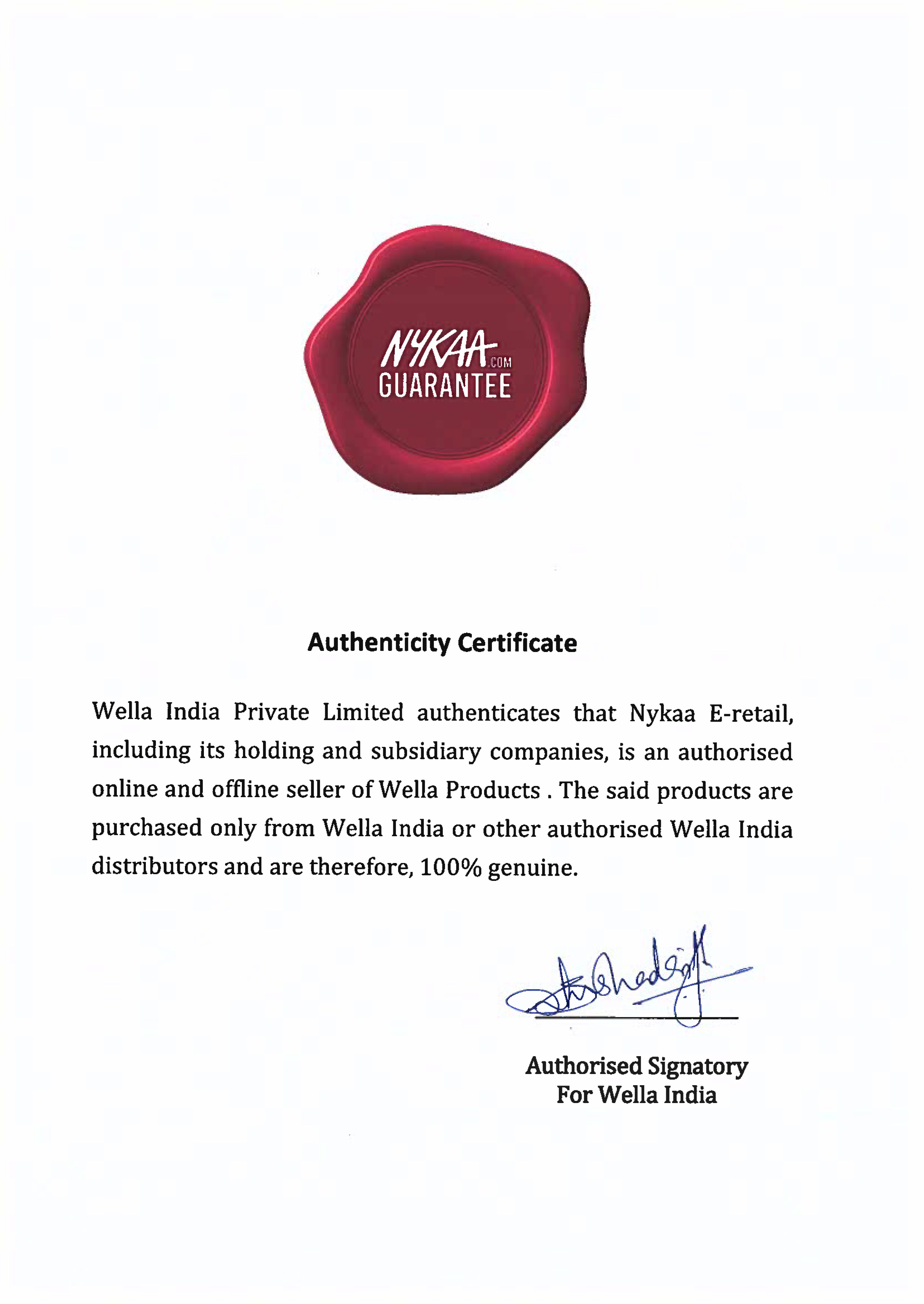 Nykaa's seal of authenticity is our guarantee that the products sold on the site are 100% Authentic and only sourced directly from brands or their authorized distributors.