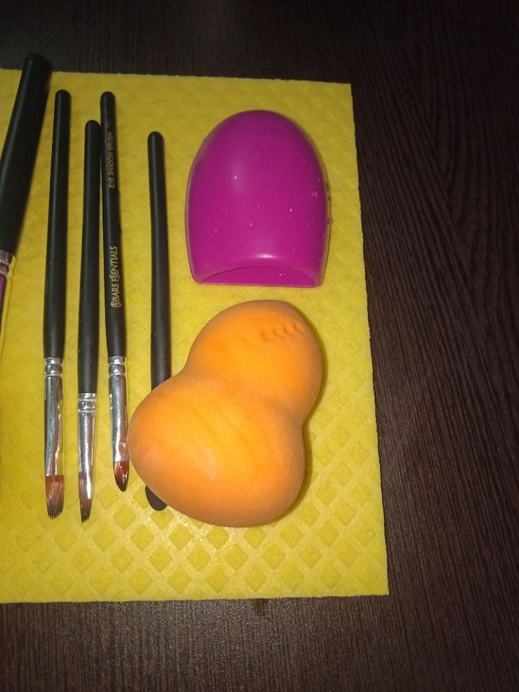 Beauty blender it's blends properly and makeup brush cleaner it's too good it is so easy and good to clean up the brush