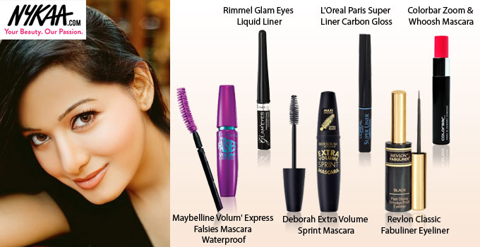 Nykaa recommends L'Oreal Paris Super Liner Carbon Gloss, Rimmel Glam Eyes Liquid Liner, Revlon Classic Fabuliner Eyeliner, Colorbar Zoom & Whoosh Mascara, Maybelline Volum' Express Falsies Mascara – Waterproof and Deborah Extra Volume Sprint Mascara.