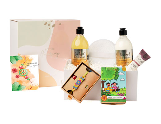 This Rakshabandhan, wrap your love in fragrant elegance with Kimirica’s Nothing But Love: Potli. Infused with enchanting notes of Gardenia and Night Blooming Jasmine, this luxe set includes a shower gel, body lotion, loofah, and a reusable potli, perfect for your sister’s self-care rituals. A sensorial escape housed in sustainable charm, it’s a gift of mindful indulgence from a brand that redefines luxury with heart and intention.