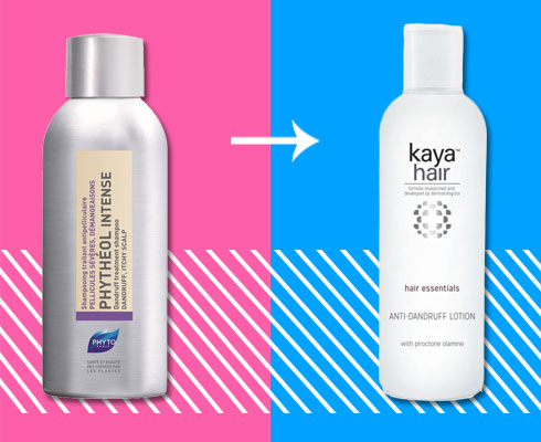 FOR LESS: Noskurf for Dandruff, a leave-in conditioner texture. Or try Kaya Anti-Dandruff Lotion