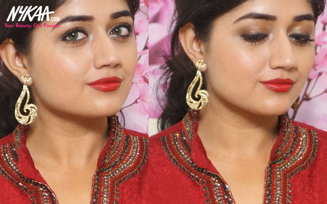 Red lips have ruled international runways all year and now it's time to flaunt this crimson trend at parties and weddings. In fact, it's a bold color that suits all Indian skin tone. In this tutorial, I will teach you how to pair red lips with classic bronze eyes to make a fashionable statement like no other. Flaunt this look with almost any outfit that has a sprinkling of gold or bronze. It also looks wonderful with a red outfit, a neutral sari or anarkali.