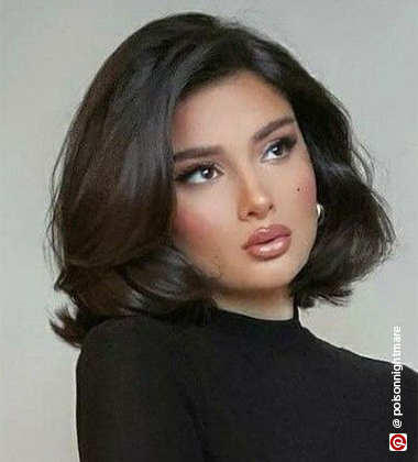 If you’ve got relatively thick hair, you can snip your way to the classic ‘90s-approved bob with brow-skimming bangs. In this cut, the ends of your hair almost brush the collarbone to make the cheeks appear narrower and to draw some attention to your décolleté. Also nice: the hair grazes the cheekbones and defines them perfectly. Love.