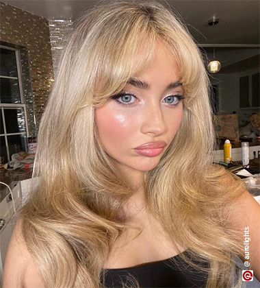 One thing about curtain bangs is that they are soft, eyelash-skimming and were definitely a soulmate for the girlies with a round face. Thanks to the middle parting, it keeps them from looking too heavy for a round face. You can easily style your curtain bangs and make them manageable beating all the “bangs are good for a day” allegations using a good volumising mousse and a medium-sized brush. Focus on volumising and creating bends in your bangs.