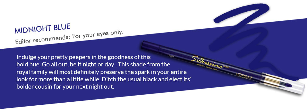 Indulge your pretty peepers in the goodness of this bold hue. Go all out, be it night or day . This shade from the royal family will most definitely preserve the spark in your entire look for more than a little while. Ditch the usual black and elect its bolder cousin for your next night out.