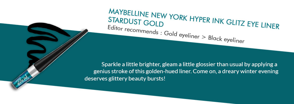 Sparkle a little brighter, gleam a little glossier than usual by applying a genius stroke of this golden-hued liner. Come on, a dreary winter evening deserves glittery beauty bursts!