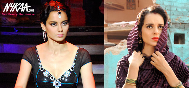 In the film, Kangana sports neutral eyes with thick bold liner on the upper lash line that makes her eyes look even larger. Follow the simple steps below to get eyes like Rajjo's.