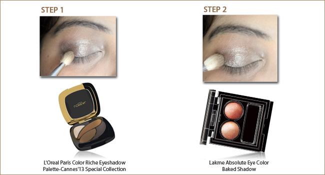 Step 1: Apply pearly mocha brown shimmer eye shadow all over upper lids. I recommend L'Oreal Paris Color Riche Eyeshadow Palette-Cannes'13 Special Collection (Shade Infiniment Bronze)