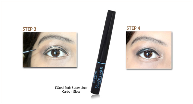 Step 3: Apply liquid liner as a border as shown in the picture to form a neat outline of the desired thickness. Give L'Oreal Paris Super Liner Carbon Gloss (Shade Carbon Black) a try.