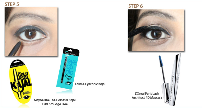 Step 5: If you have big eyes you may apply kohl on the lower lash line to make your eyes look proportionate. Girls with smaller eyes may avoid kohl. You could use Maybelline The Colossal Kajal 12hr Smudge Free or Lakme Eyeconic Kajal.