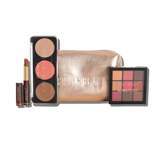Your search for a 'daily kit' ends here! Swiss Beauty brings you the Ultimate Everyday Makeup kit that will help you realise different looks— from sun-kissed to rose-hued, with only three products. This makeup pouch contains the famous 3-in 1, cheek-a-boo face palette to contour, highlight and brighten your face with silky smooth formulas. The versatile 9-shade eyeshadow palette gives you all the room for experimentation. Also, in this combo is the Swiss Beauty no-transfer formula for a fresh burst of matte colours with infinite staying power.