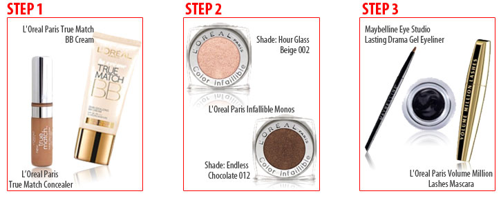 STEP 1:On clean skin, blend concealer under the eyes and over blemishes. L'Oreal Paris True Match Concealer seriously works miracles! Then, apply a tinted moisturizer all over your face. We love L'Oreal Paris True Match BB Cream. It's not heavy and allows the skin to breath while reducing the appearance of imperfections. The result: flawless coverage that's gentle on the skin.