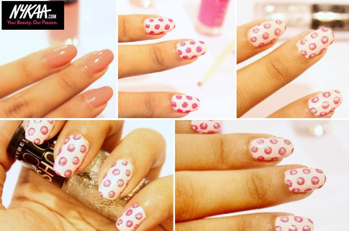 Tired of old-fashioned polka-dotted nails that are so done and dusted? While it’s a pretty pattern and simple enough, it’s easy to get bored of the plain old polka pattern. Here’s how to recreate this: