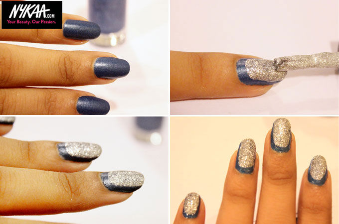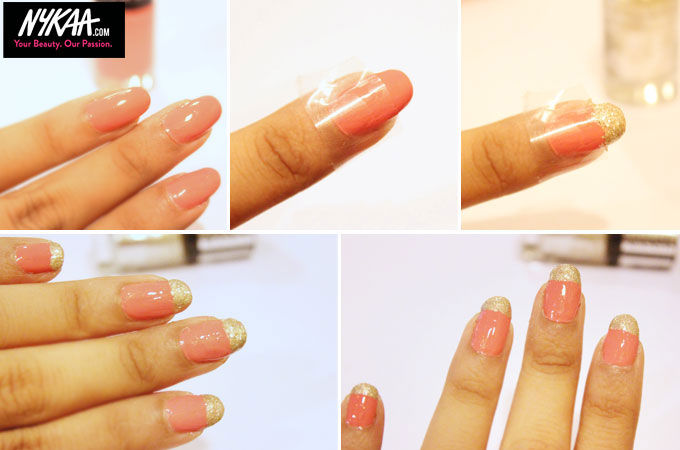 Step 3: Apply your favourite glitter nail polish on the exposed tips.