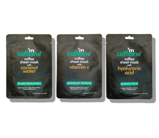 MCaffeine Vitamin C, Hyaluronic Acid & Coconut Water Face Sheet Masks for Glowing Skin - Pack of 3