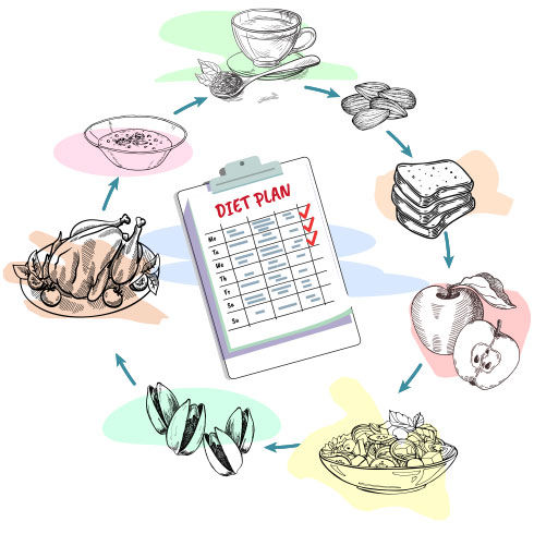 A sample diet would be a glass of water and a cup of green tea in the morning, two whole-wheat toasts with salad and 10 almonds for breakfast, followed by a bowl of cooked vegetables along with a katori of daal, two medium-sized whole-wheat rotis and a glass of buttermilk for lunch. After a light snack of 30 pistachios and a cup of green tea, end the day with a light dinner consisting of a bowl of vegetable soup and 75 grams of chicken or paneer.