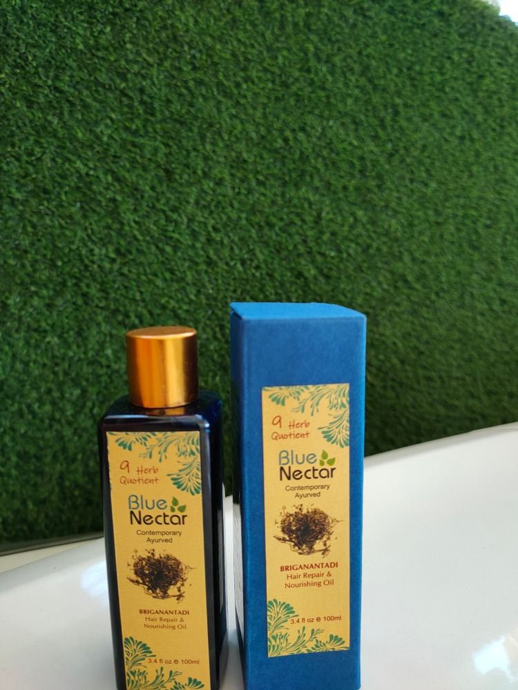 This Blue Nectar Briganantadi Hair repair and treatment oil is very effective 😍As it has 9 herbs , with its applications, hair becomes extra soft and shiny. The nine natural ingredients like amla , bhringaraj, mulethi, coconut, lavender, rosemary, methi, sesame, neel Patra and everything which makes this oil a perfect one to cure all sort of hair problems. It helps to make your hairy shiny and give the roots strength. It's fragrance is also good. I highly recommend this product.
