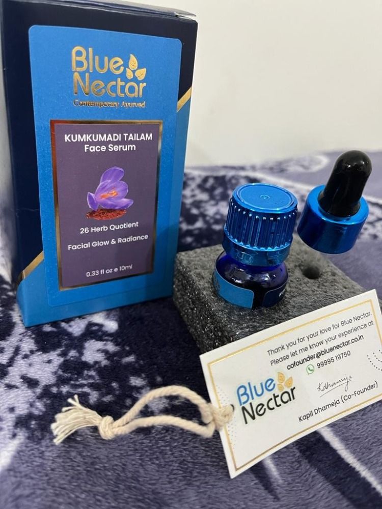 Blue nectar kumkumadi tailam face serum is best serum for skin . This serum makes your skin soft from inside This serum gives glow and shine to your skin.
