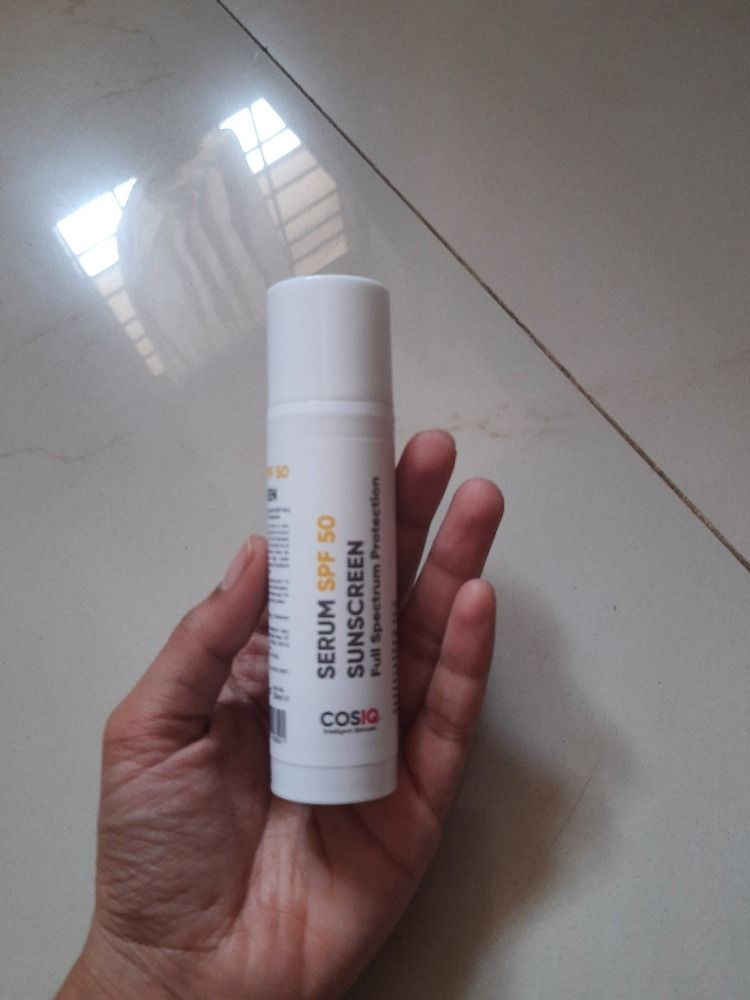 COSIQ Sunscreen Serum SPF 50 feels lightweight and blends easily into the skin without leaving a white cast. Great for daily use with strong sun protection and a non-greasy finish!