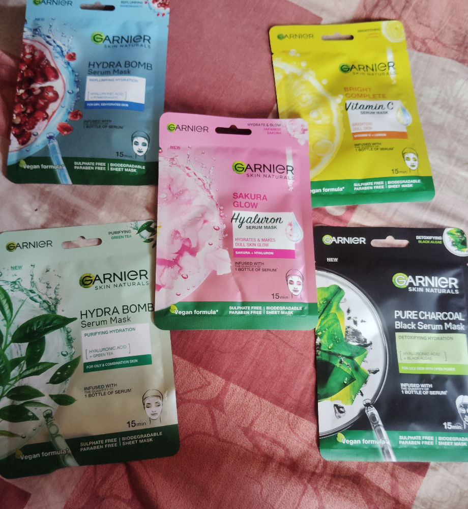 Bought this pack of 5 Garnier sheet masks .at a very reasonable price and trust me it gives the best glow to skin as it promises best product must buy👍