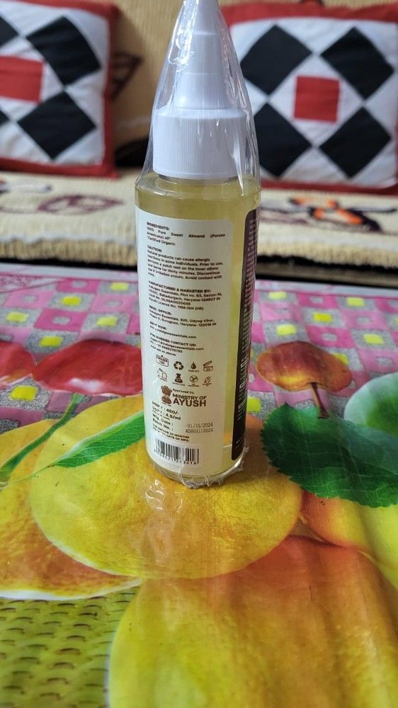 Pure cold press almond oil quality no 1. I love this oil best for hair fall glowing skin love it