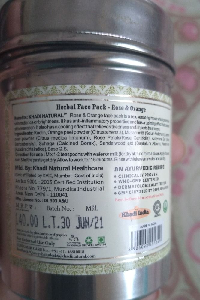 Earlier i ordered sandalwood n rose that was amazing..now i order this orange n rose face pack n trust me this one is amazing instantly brighten face..m happy with purchase