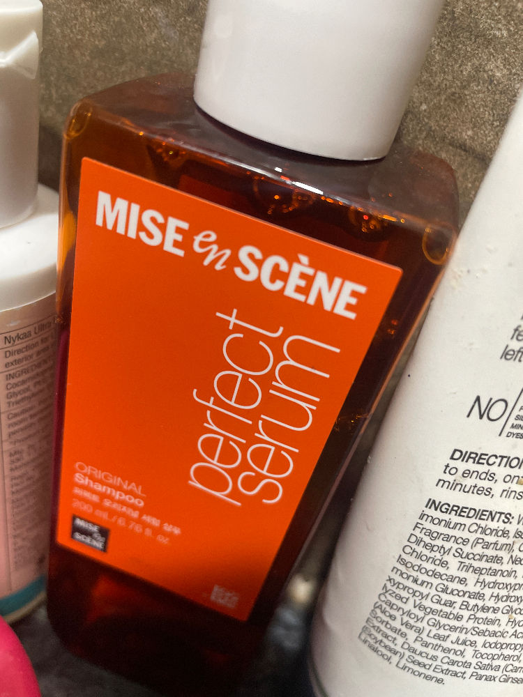 It's too shiny. mise en scène Perfect Serum Original Shampoo.