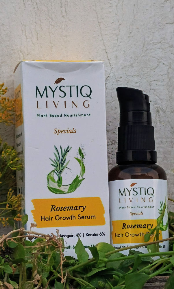 I've been using the Mystiq Living Rosemary Hair Growth Serum for a few weeks now, and I’m genuinely impressed with the results. The serum has a lightweight texture and doesn’t leave my hair feeling greasy, which is a huge plus. I noticed less hair fall and some new baby hairs starting to grow in areas that were thinning before. The rosemary scent is refreshing and subtle, and I love that it's plant-based with key ingredients like Anagain and Keratin to support hair health. My hair feels stronger and looks shinier after regular use. Definitely a great addition to my hair care routine! Highly recommend this serum if you’re looking for a natural way to boost hair growth and improve hair texture.