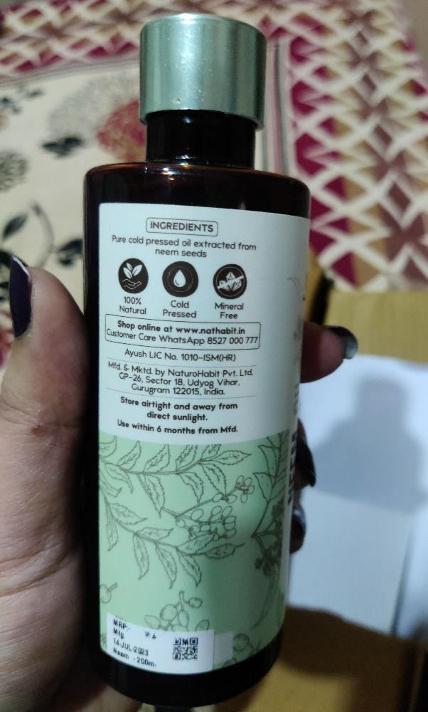 Actually I am not a big fan of products which are not good in smell , but neem oil seems be pure cold press oil beneficial for skin and hair, I just started using it and resu...Read More