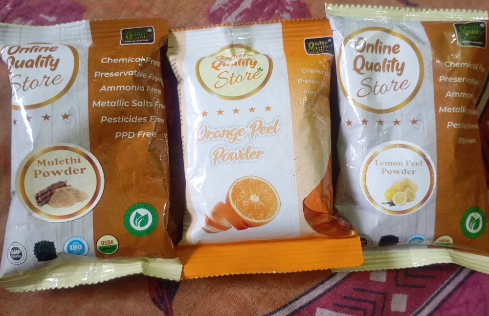 Lemon Peel Powder, Mulethi Powder & Orange Peel Powder Very good for hair and skin. Online Quality Store products are 100% pure and natural, it is a 3 product combo.