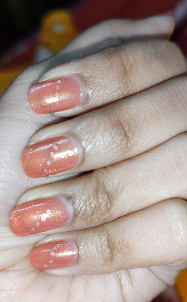 Totally different from photo...but the color is so so soooooo beautiful....it's a glittery nail paint...light brownish orange colour.🧡🧡🧡🧡🧡🧡🧡