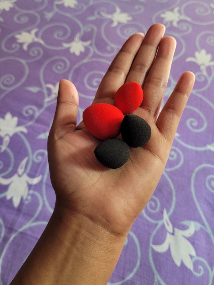Really like thismini beauty blender. This is perfect for blending small area. Perfect for blending concealer. You can try this. It's perfect for blending undereye area and under eyebrows. I usually use Real techniques's beauty blender, in the picture you can see how small it is than usual blender.