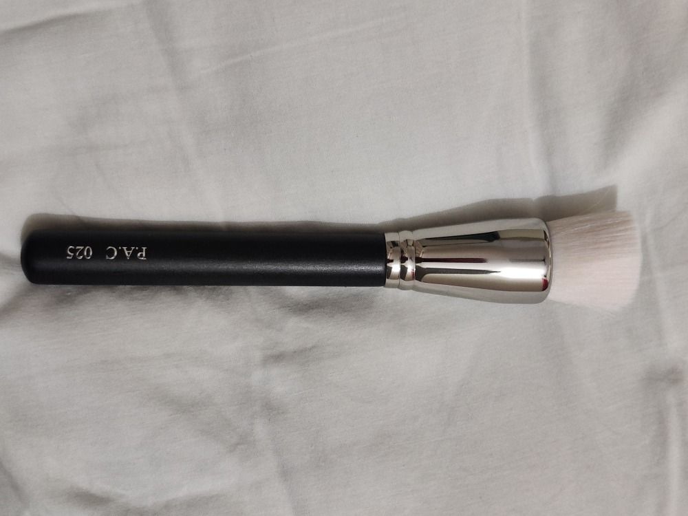 It's a very good brush for blending liquid foundation. The bristles are smooth, no shedding etc. Typical PAC quality. The shape is flat and not domed as the description says. Good to stipple first and cover the face in swirling motion. Needs a light hand.