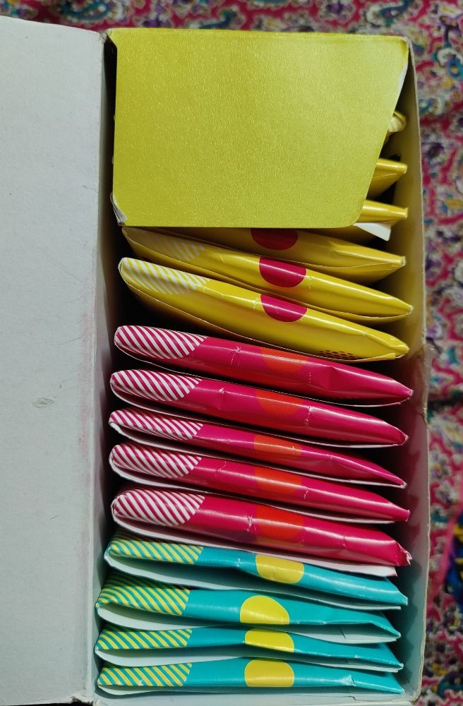 Nice packaging, different kind of napkins for different days , most important eco friendly ,smooth texture ,totally 5 star combo.Ladies go for it .