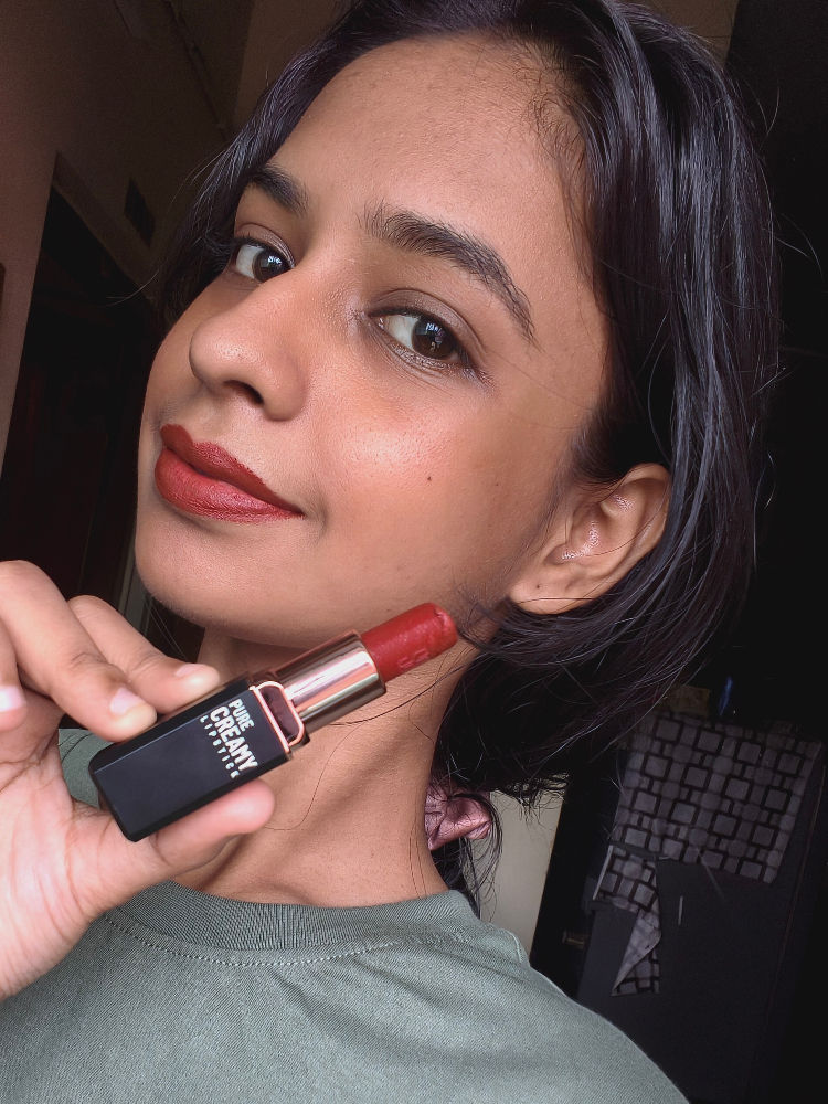 Using this Creamy Lipstick felt so smooth and hydrating on my lips. The rich colour glides effortlessly and gives a bold, elegant finish in just one swipe.