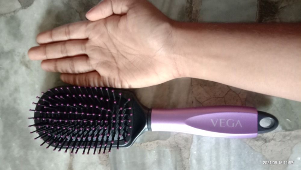 When I thought to go for a paddle brush I wonder to select it from Vega and my deceision was absolutely this brand never evr disappointed me specially this particularly paddle brush doest its work absolutely to wht it says it perfect to make ur hair smoothly and it adds shine in ur hair too and for dentangling ur hair its perfect .....its a great scalp messager also trust me guys just go fr this paddle brush from vega