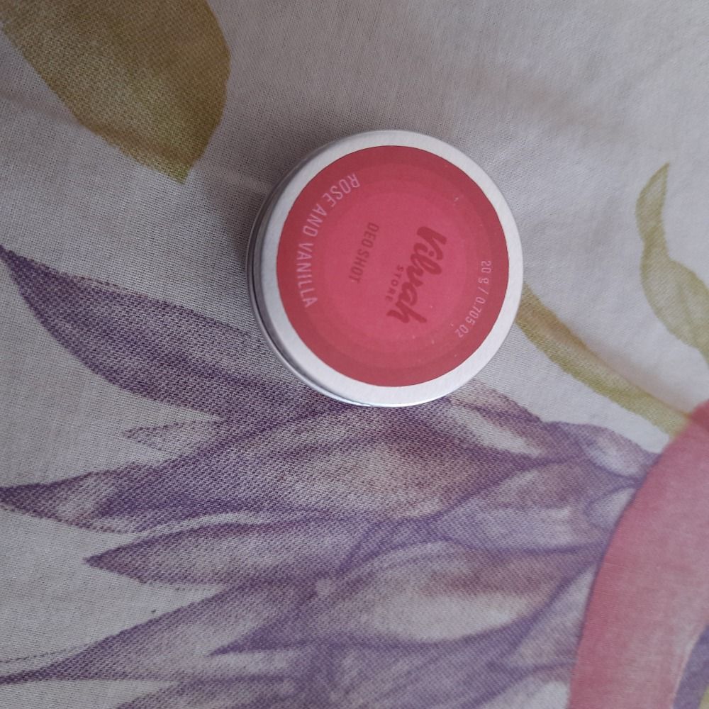 Great deo. Pros: Chemical free. Long lasting. Awesome (rose and vanilla) fragrance. Cons: packaging. It should come in a stick form.